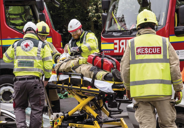 Didcot crew rescuing the ‘driver’ from a car by cutting the roof