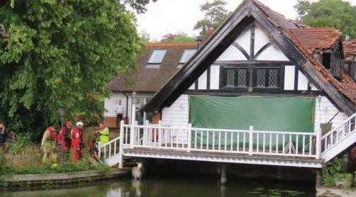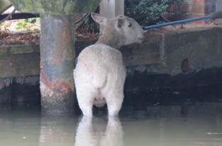 It was calmly standing up to its knees in a shallow part right at the back. I called Wendy Hermon who organises our Swan Support Rescue Centre as I knew she held the numbers of other rescue organisations. She and her husband Steve, who is experienced in these situations, decided to come out with a canoe. They could not reach far enough back to get a line round the sheep, so we sent for the Fire Service Animal Rescue Unit, who turned up along with a fire engine as well. They were eventually able to get a line around it and tried to get it onto their small raft, but it managed to free itself and leapt away. There followed an exciting 20 minutes of chasing it around the garden and almost back into the river. Luckily it became trapped in a small space in the debris and was hauled out. We then had to wait for a shepherd to come and collect it How it came to be on the loose and from where it came is a mystery. It had been seen in the Swan Hotel car park